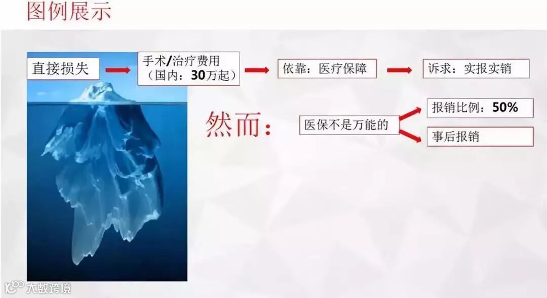 那到底重疾会有那些损失呢?首先最容易想到的。就是手术和治疗费用,在中国这个成本需要30万起步。这就是直接损失,很容易被我们看到,所以一般我们都会做好提前防范。而防范方式就是医疗保障,同时我们希望能实报实销。
