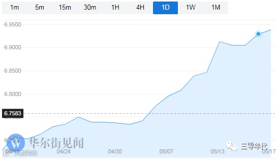 又见6.94关口!受美对华2000亿美元产品征税影响以及中美毛衣战的加剧,今日离岸人民币跌破6.94关口。