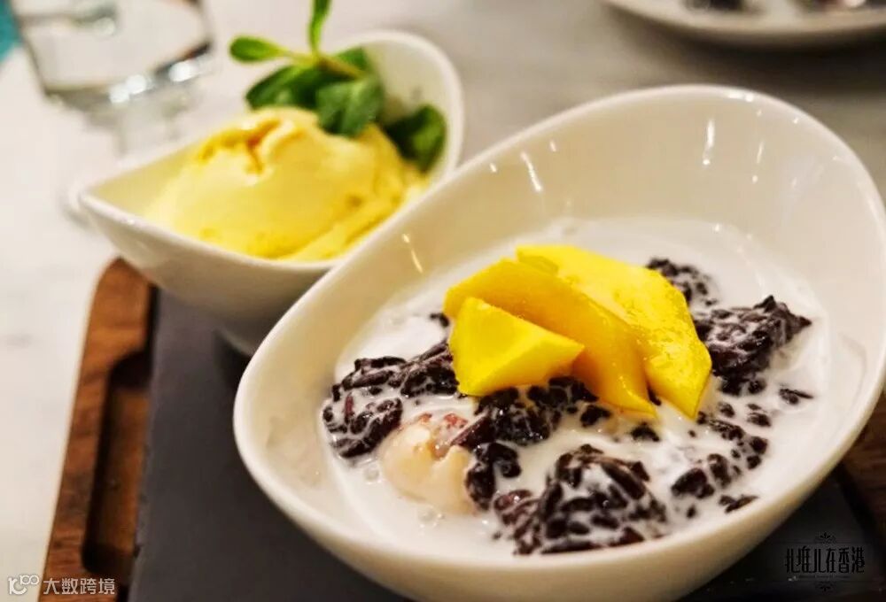 Mama San的芒果黑糯米非常好吃, 黑糯米煮得软硬适中,带一点点的咬劲。椰浆香甜而不腻,加了一粒荔枝的小清新味道,微暖的椰汁黑糯米和芒果雪糕同吃才是真正的享受,是一道水平好高的甜点呢!