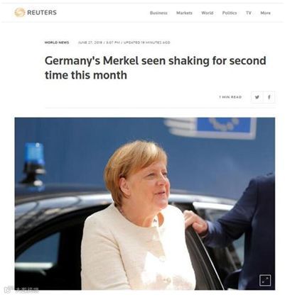 此前,有媒体认为,最近德国处于热浪之中,默克尔“颤抖”可能是因为“中暑”。
