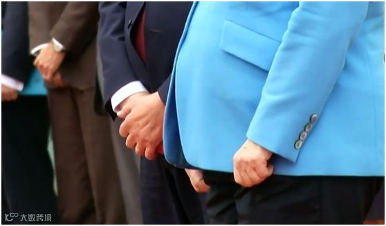 视频显示:默克尔当天身着蓝色正装,站在芬兰总理的身旁。突然,她的身体出现明显“颤抖”,默克尔将双手紧握,置于身前,但还是无法控制身体的“抖动”。