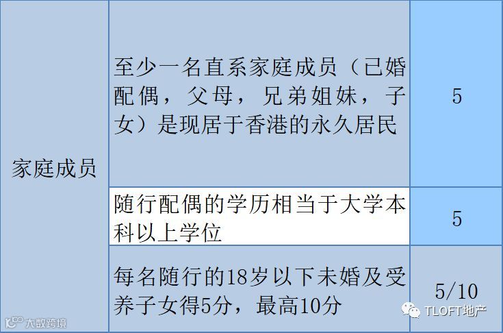 最后一项是家庭背景,Z先生的太太本科毕业,因此可以获得5分配偶学历分,有一个3岁宝宝,可以获得5分子女分。