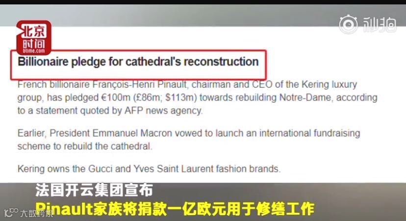 “我的父亲(François Pinault)和我决定从Artemis中出资一亿欧元,用于巴黎圣母院重建所必需的工作。”Francois-Henri Pinault在声明中写道。