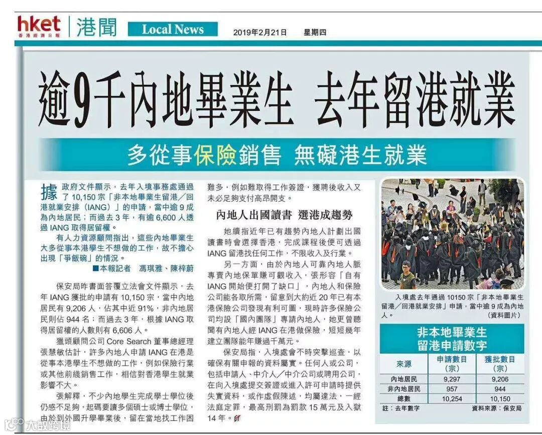 根据香港经济日报近日的报导,越来越多的港漂选择留在香港加入保险业。