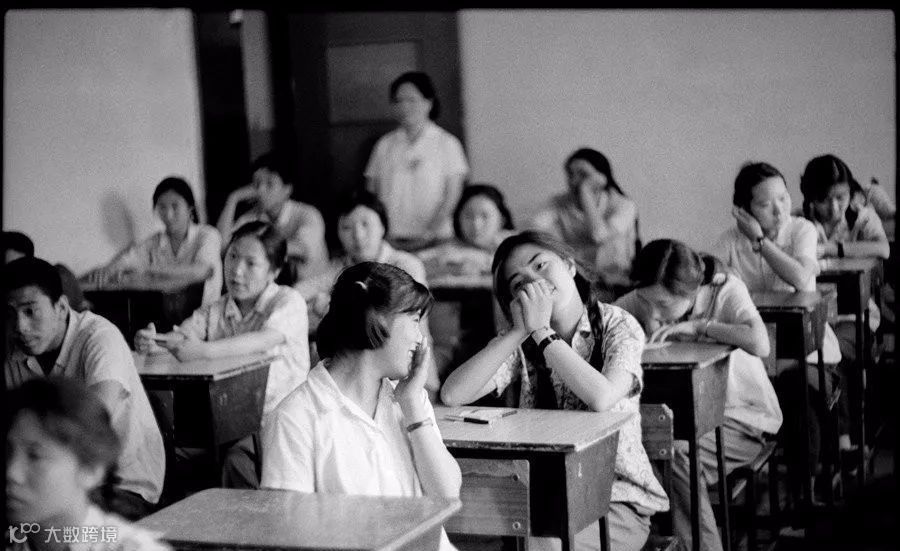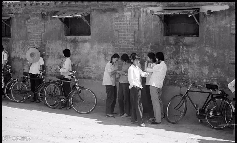 我后来又连续拍了两年高考,上述的现象就看不到了。不少考生喜欢在自行车棚里复习,阴凉通风。北京七月的中午,蝉声此起彼伏,柳条儿摆动却没有风声,早晨观阵的人们不见了踪影,默念背诵的窃窃声,断续地传到我的耳朵里。有几个人坐在楼道的尽头,屁股底下是带来的报纸,一个女生一脚踩着凉鞋,一脚光着蹬在暖气上,顾不上别的了。一个男青年双脚盘在课桌腿上,右手夹着半截烟,左手的上海表清晰可见,他的视线一直盯着课桌上的书本,书本的旁边有一块小毛巾。两个女生就蹲在一堵墙边,可能旁边有一棵树吧,书包放在腿上,一手支着下颚,一手捧着书本,她们的腿不麻吗?有几间教室留给了考生,桌椅散布,大家各据一方,有两个男生穿着跨栏背心,一位双脚踩在另一把椅子上,左手拿书,眼睛却看着别处,拍摄中我听见他说:“我要考上了,非他妈……”后面的话他没说出来。