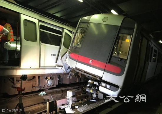 3月18日凌晨3点左右,香港港铁人员在测试港铁荃湾线新信号期间,两列列车在中环站附近相撞,港铁荃湾线中环站凌晨近三时有两列列车相撞,两名车长送院,其中一人脚部受伤。港铁发放的图片显示,其中一列列车的车头右边撞毁,车身轻微倾斜;另一架列车车身严重损毁,其中一节车厢整排座位飞脱、扶手跌落,车门变形,车厢内满布零件碎片,犹如爆炸现场。