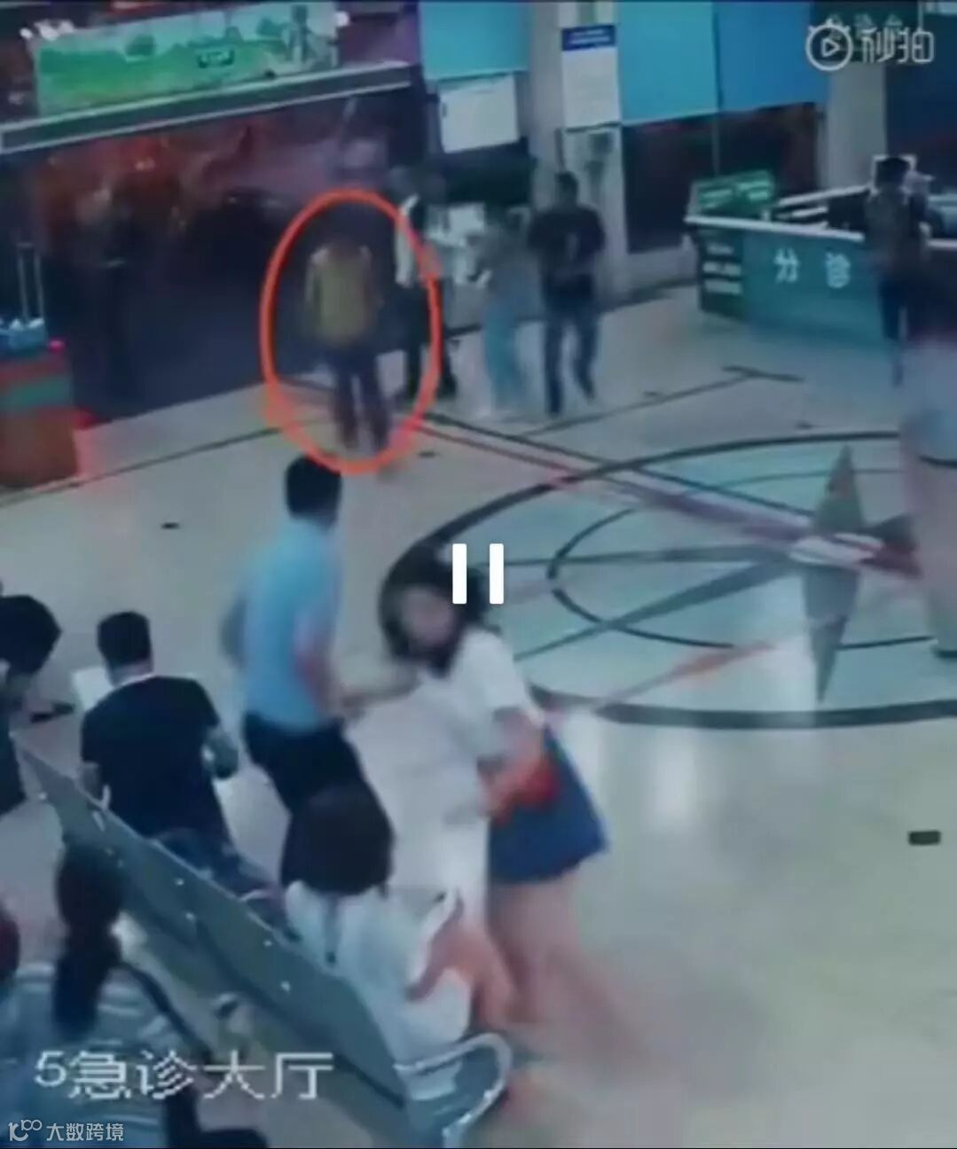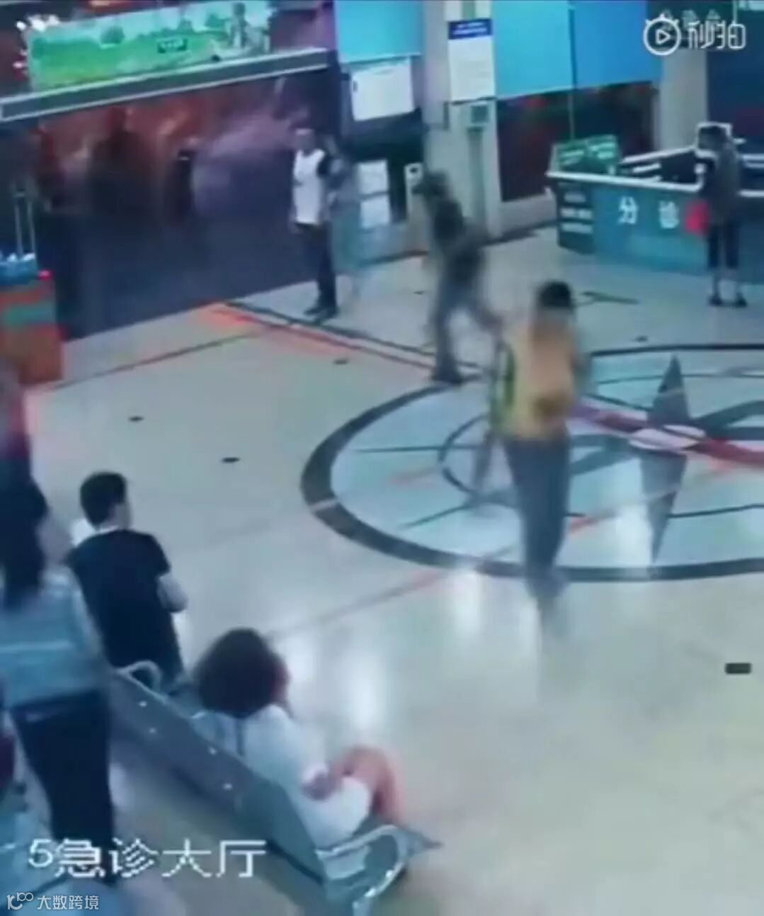 某医院的急诊大厅,一男子持菜刀摇摇晃晃进入。