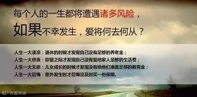 保险永远是留给有规划、有责任心的人,其实你买不买保险,对代理人来说就是少做一笔业务而已。没有人会因为买了保险而倾家荡产,却有人因为没有买保险而一无所有,买保险是一种机会,也是一种资格。你可以轻视它,它自然就无视你;你如果重视它,它必定会守护你。得与失,尽在你的远见与智慧之中。