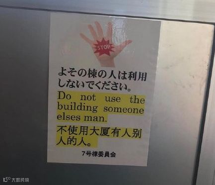よその棟の人は利用しないでください(非此栋人员请勿使用)——不使用大厦有人别人的人