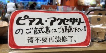 ピアス・アクセサリーのご試着はご遠慮ください( 耳环首饰请不要试戴)——请不要再装修了。