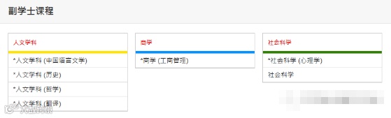 副学士课程包括:人文学科类、商学类和社会科学类。