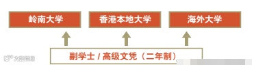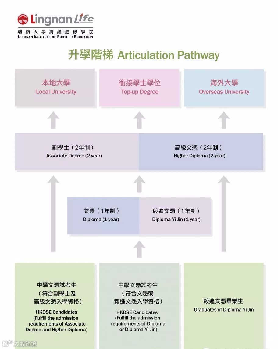 学生完成2年副学士及高级文凭课程后,毕业生可向海外或香港本地大学,个别申请入读学士学位课程。跟内地大学的4年制一样,同样只需要花4年时间,即可获得跟高考时直接考取香港本科学士学位课程的同学一模一样的学位证书。