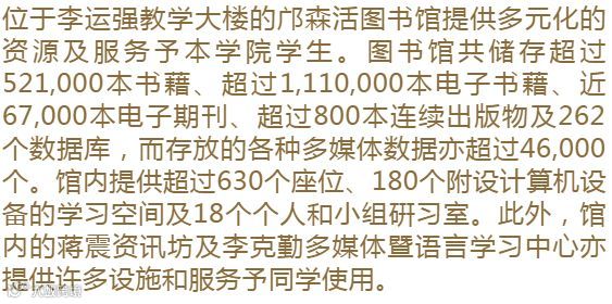 副学士及高级文凭课程的学生可享用岭南大学学习及康乐设施。
