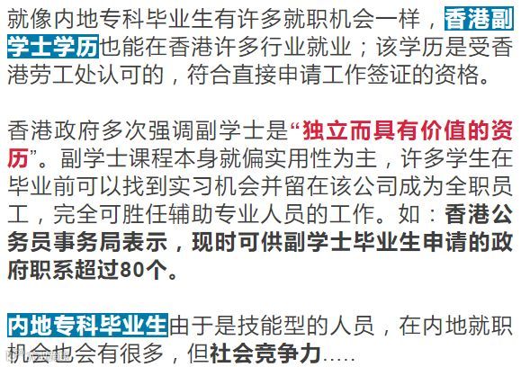 在这点上,公务员在国内的机会是多么的困难,更别说是大专生了,而相对来说,香港有许多的优势,比如世界金融中心、国际化的优势、在未来还能拿到香港身份证享受香港福利等等。