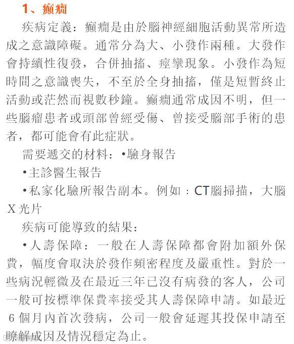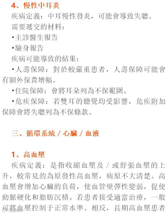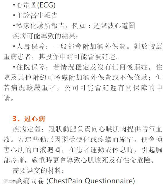 這裡我把一些常見疾病的定義、需要提交的資料以及病情的不同嚴重程度對核保結果的影響,給大家分享一下: