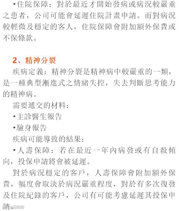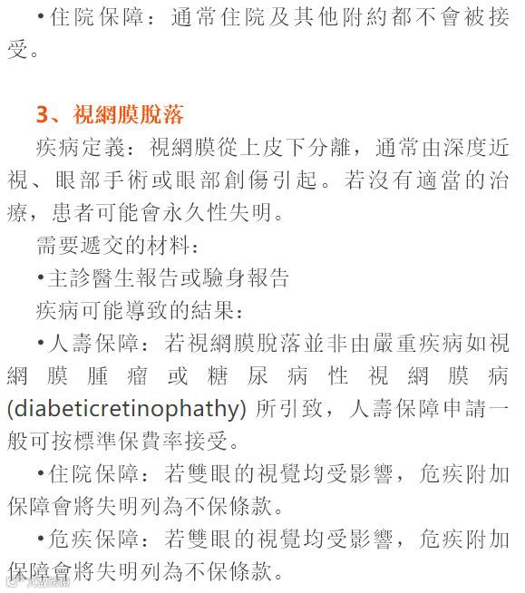 •住院保障:一般會附加不保條款。但若病情較重或有併發症,住院保障則可能不被接受。