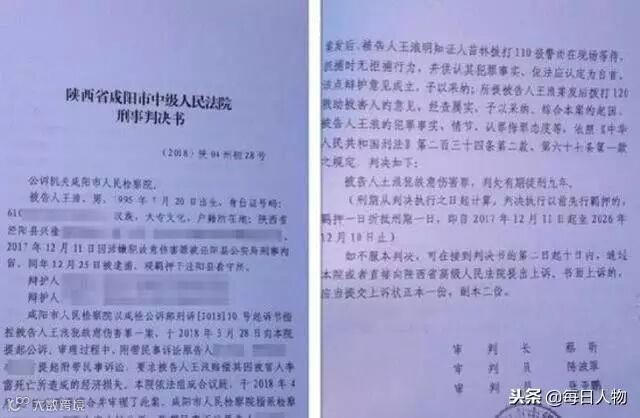 对上述18秒的冲突,一审咸阳市中级人民法院判决书认定王浪“犯故意伤害罪,判处有期徒刑九年”。