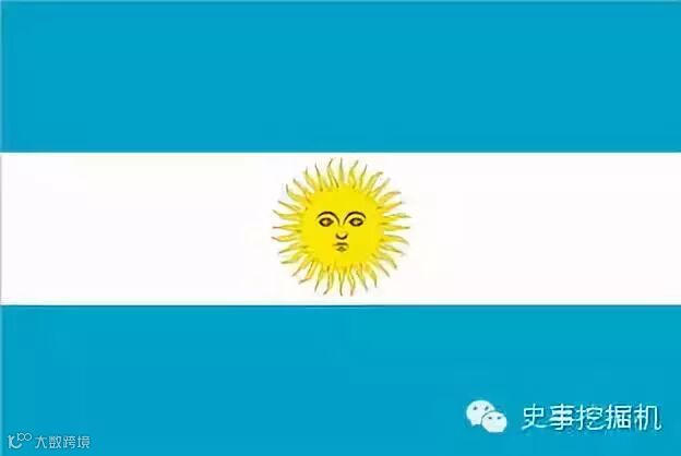 阿根廷国旗:天蓝色象征正义,白色象征信念,纯洁,正直和高尚。白色中间是“五月的太阳”,象征自由和未来。
