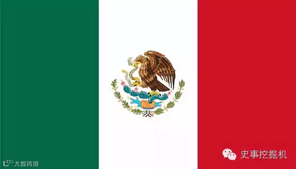 墨西哥国旗:白色部分中间绘有墨西哥国徽。绿色象征独立和希望,白色象征和平与宗教信仰,红色象征国家的统一。