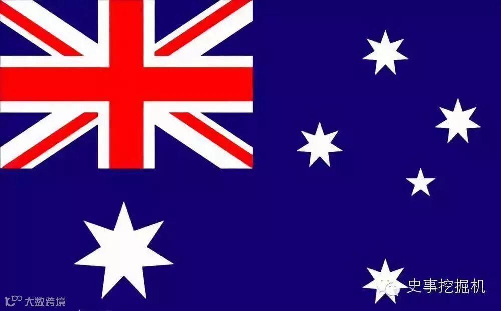 澳大利亚国旗:左上角为英国国旗,表明澳与英国的传统关系。“米”字旗下的大七角星象征组成澳联邦的六个洲和联邦区。其余部分有四颗较大的白色七角星与一颗较小的白色五角星,代表的是太平洋上空的南十字星座。蓝色象征着大海环抱着澳大利亚领土。