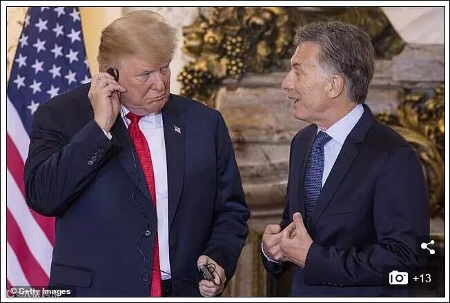当马克里用西班牙语亲切问候时,特朗普把他的翻译耳机扔到地上,对阿根廷总统说,“比起这东西(翻译机),我还是听你本人说话比较好理解。”