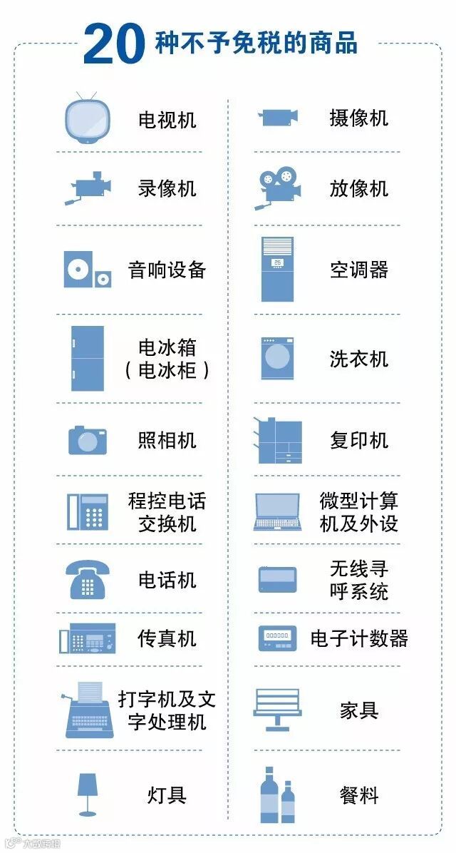 最后送上20种不予免税商品图: