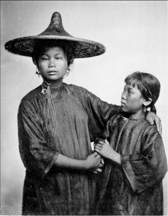 这是一户体面的水上人家的两个女儿,她们从很小的时候就开始学习摇橹掌船。比起卖身为奴,让那些心地不善的太太们买回去做丫鬟,或者遭遇更坏的命运,这种跟广州所有的穷苦人一样勤俭谨持的生活还是令人欣慰的。