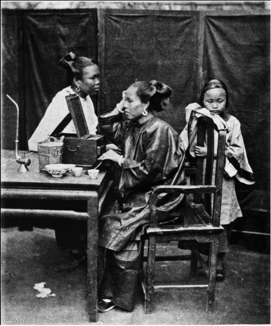 中国的女士们精于梳妆,不过她们的方式与我们的有些不同。没有哪位注重仪容的中国美人会拒绝洗脸,而且必须用温热的湿布来擦拭。这一步程序完成后,就要抹上精心准备的香粉。