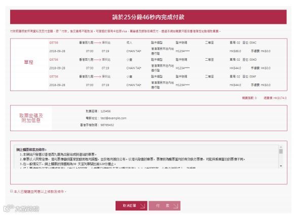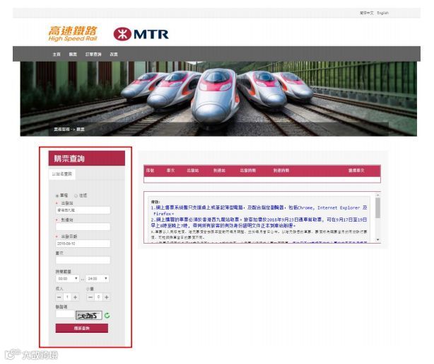 再打开港铁售卖高铁票的网站,通过输入日期,终点站等条件,找到同一班车。