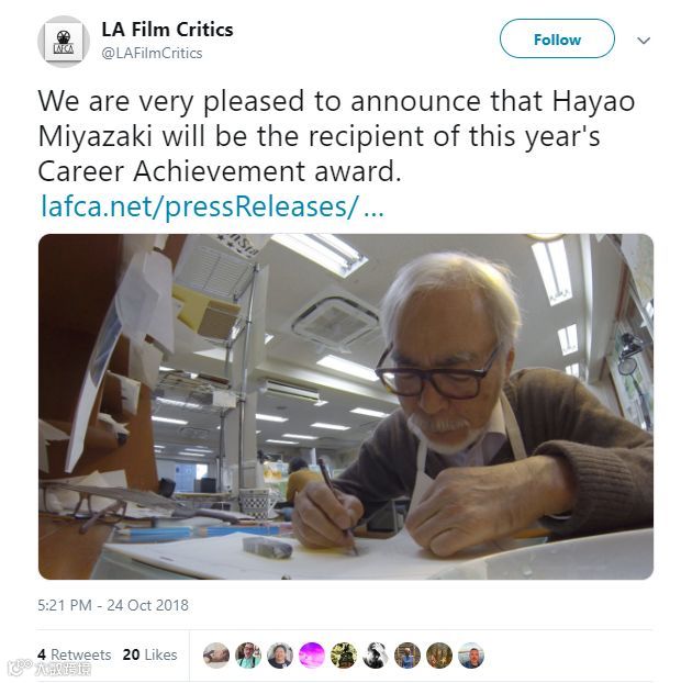 77岁的他将被洛杉矶影评人协会授予“终身成就奖”,颁奖典礼将于明年1月12日在美国加州举行。