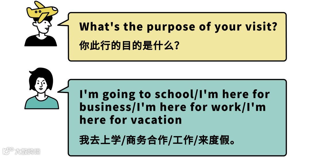 下了飞机之后,先过海关,海关官员们会随机提问,以下几个问题不一定都会碰上,但有备无患。