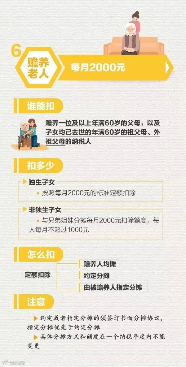 如果是非独生子女,需要和兄弟姐妹分摊每月2000元的扣除额度,但每人分摊的额度不能超过每月1000元。具体分摊的方式,可以和兄弟姐妹均摊或约定分摊,也可以由老人指定分摊。