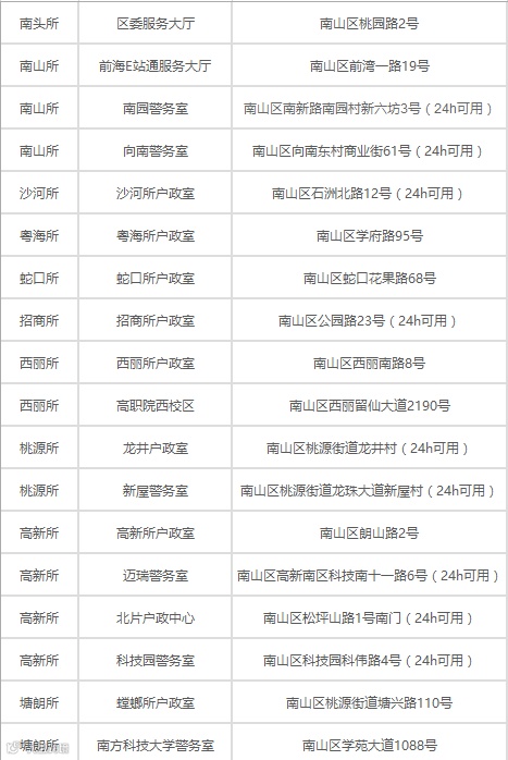 福强所警务E站:深圳市福田区裕亨路23号福田口岸15号门(24h可用)