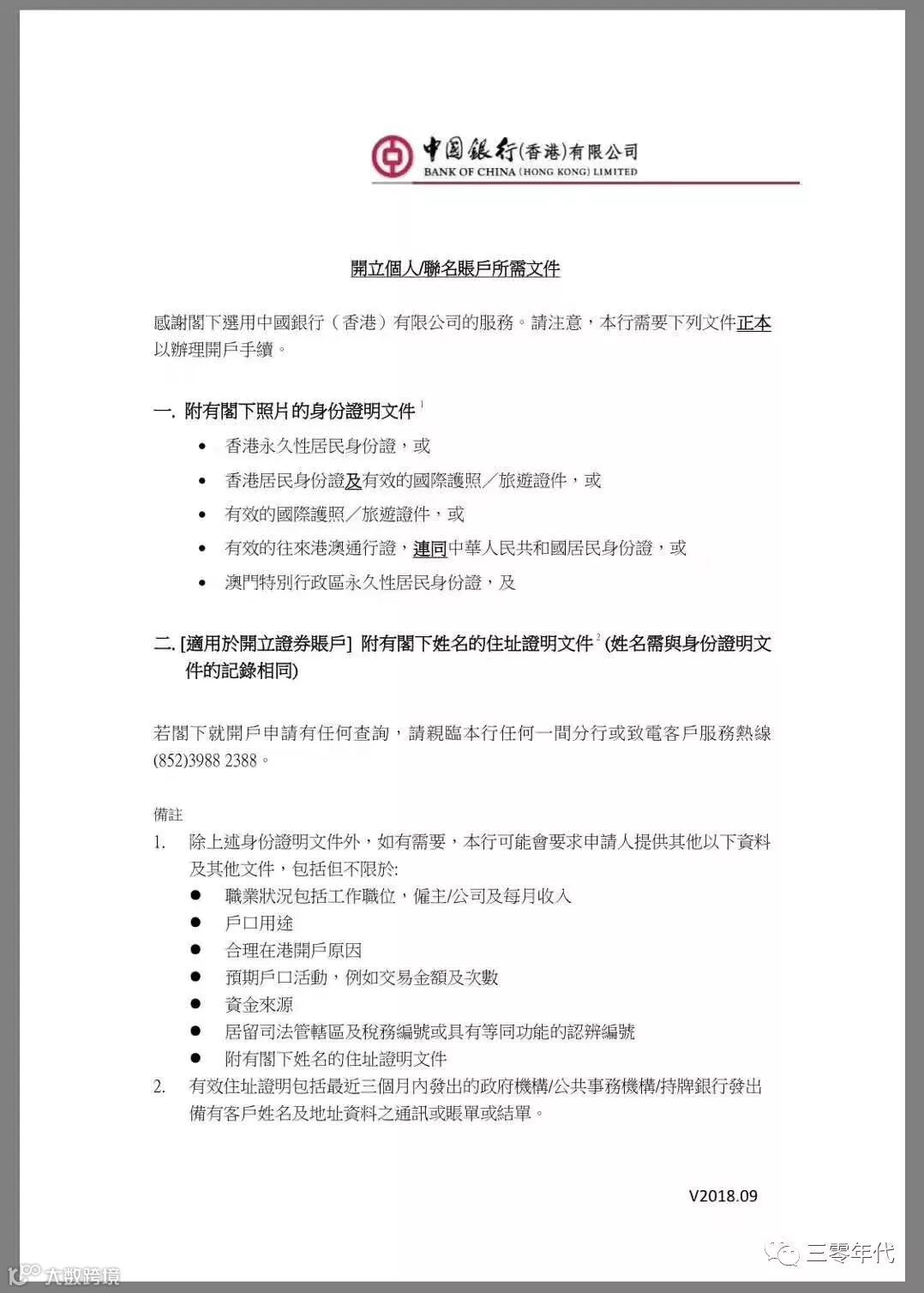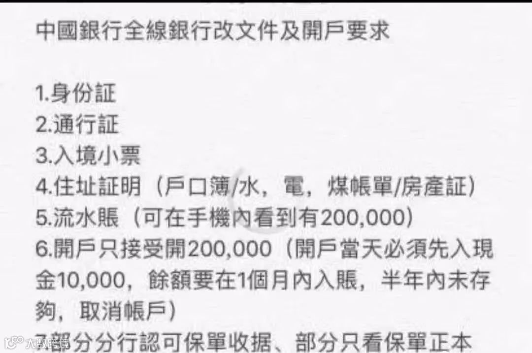 消息是否属实呢?咨询多位专业人士以及银行的朋友,反馈说,确有此事,并给出一张中银香港的新的开户要求: