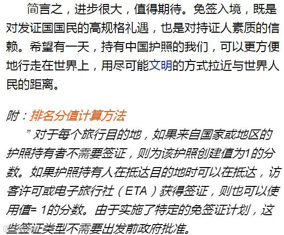 值得注意的是,这个排名因为是按分数排的,因此导致大量护照是并列名次,最终全球199种护照只有106个名次。我们也可以从上图中,排出我们名次实际为119名,无论是106中71名还是199中的119名,可以看出我们的护照便利度在全球大致位于中等偏下。