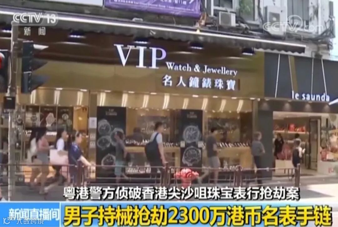7月1日上午10时40分,珠宝表店刚刚开铺营业,三名穿雨衣、戴帽子和口罩的蒙面人,持刀、铁锤和伸缩棍闯入尖沙咀汉口道55至57号一间店铺,劫匪打了一名男性店员两耳光进行恐吓,打碎店内展示柜玻璃抢走33块名表、6条手链,被抢物品价值约港币2300万元。