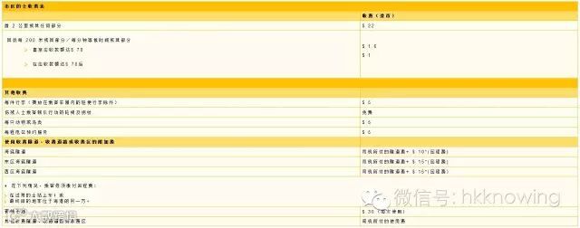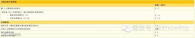 车厢内张贴了一张收费表,详列各项收费。