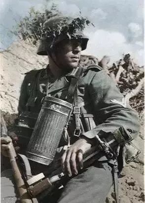 苏军从战场上的德军也看到了,德国士兵基本是都背着防毒面具罐,作为标配的。