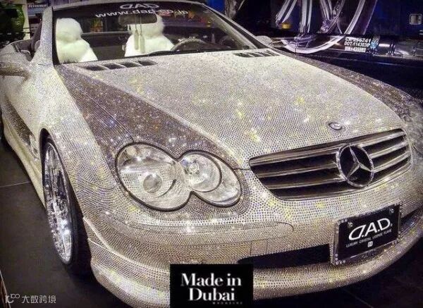 比如,这辆车身镶满了30万颗真.钻.石.的奔驰!