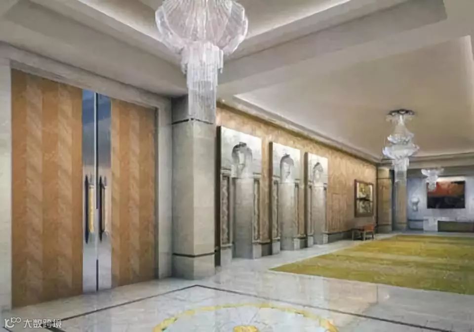 豪宅的大堂设有9部电梯,
