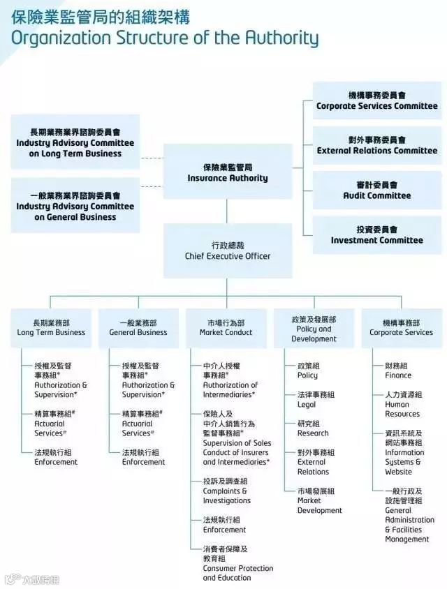 保险业监管局(保监局)于2017年6月26日起取代保险业监理处规管保险公司,接手保监处的法定职能。保监处将于同日解散,同时保监局将全面接手现时三个自律规管机构的职务,三个自律机构包括:香港保险业联会、香港保险经纪协会、香港保险顾问联会。