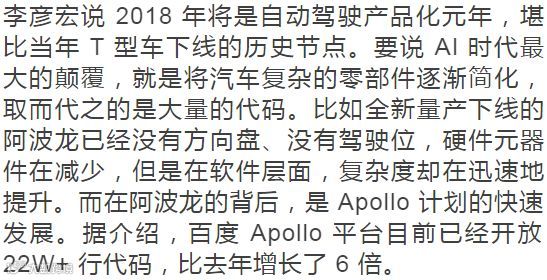 而阿波龙的商业化落地也同步展开。已经完成总装的阿波龙,即将发往北京、雄安、深圳、福建平潭、湖北武汉、日本东京等地开展商业化运营。据李彦宏介绍,在日本,百度将与软银合作,阿波龙被用于一些核电站内部的人员接驳,也会用于东京地区一些高龄化社区的穿梭接送。