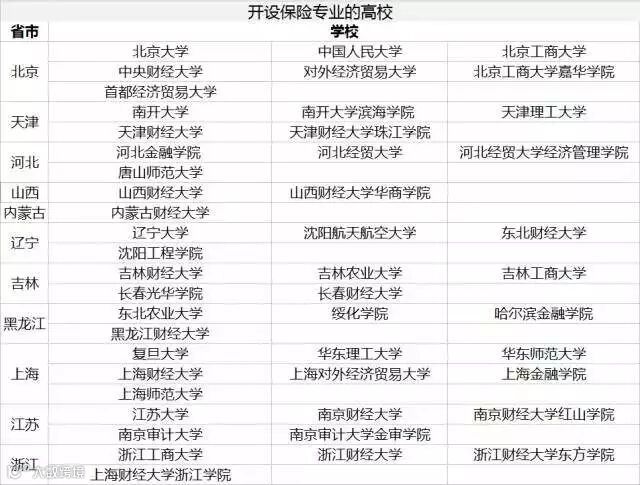 开设保险专业的院校中不乏北京大学、中国人民大学、复旦大学等985、211重点大学。这些一流的学校开设保险专业,正是基于对中国保险业未来发展潜力的信心。
