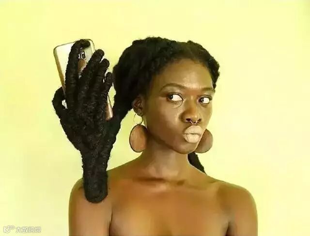 今年22岁的拉埃蒂蒂娅,借用衣架、金属丝、针和线等物件,将自己的头发做成了“雕塑”。