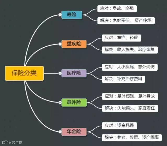 总的来说,保险险种可分为以下几种且各司其职: