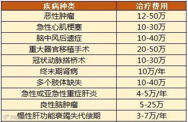A:我這有一張表,上面詳細列舉了一些重大疾病所需的治療費用,現實一點講,我認為至少要買50萬。我一個朋友的太太得了良性腦腫瘤,在某醫院ICU住了兩個月,花了70萬,聽說家裡已經開始賣房子了,還不知道什麼時候是個頭。都不敢想像這事要是發生在我身上會怎麼樣,看病的錢,房子的貸款,小孩上學和家裡日常開支,後續康復的錢,真是個無底洞啊。這裡一定要和大家澄清一個觀念,那就是重大疾病保險絕不僅僅是看病的錢,還要考慮康復護理費用,和家庭收入損失的那部分錢。