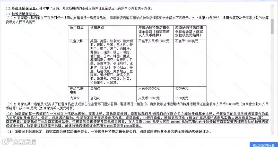 移动电源、电池类因安全隐患突出,保证金直接提升至3万元人民币; -