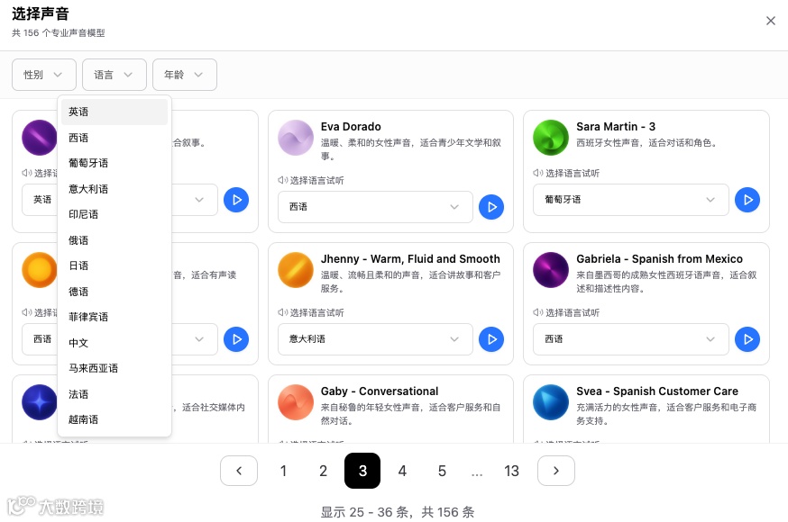 2.选择音频内容,支持多语言音频
