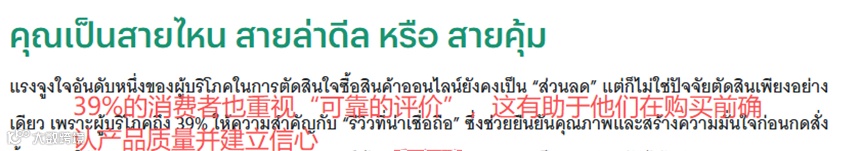 调查数据显示,有45%的泰国消费者更加注重商品选择的丰富度,39%则看重产品好评率。