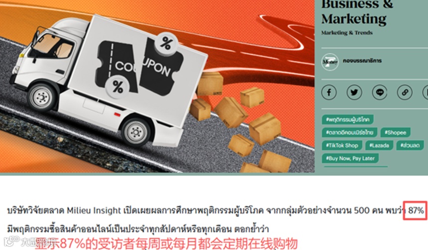 八成泰国消费者每月都网购